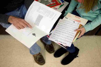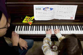 - Major Chords for Minors instructor Bruce Leaman (left) and Paige Rosas, 12, look through music books to find some songs for Rosas to practice with during her piano lesson.